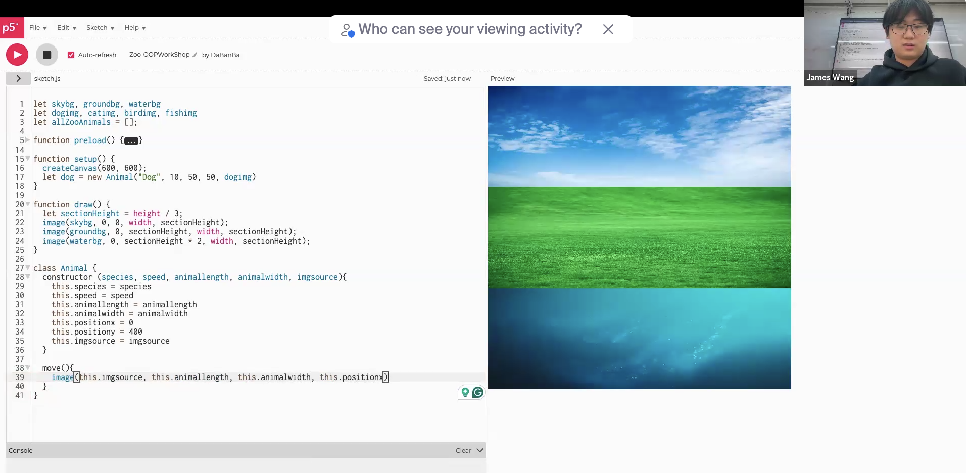 Dive into the world of object-oriented programming with p5.js and learn how to create dynamic, interactive visual projects. This hands-on workshop will guide you through the fundamentals of OOP, showing you how to structure your code efficiently and develop engaging, responsive programs using objects and classes.